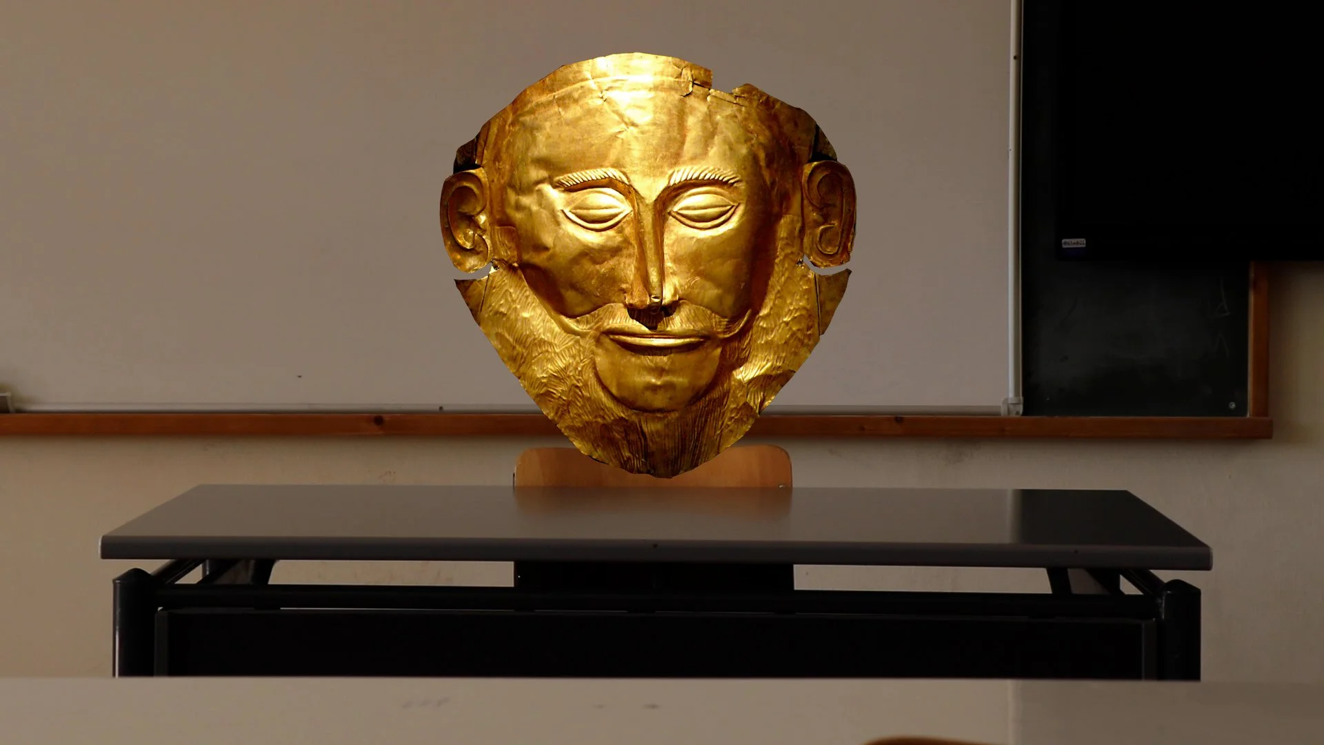 “Mendacity/ Τρία Ψέματα Μία Αλήθεια”, is a 20min video essay that superimposes a joint narration read by myself and my educator parents on footage shot in an empty public high school in Athens. It is a study and critique of the glorification and instrumentalization of Greek antiquity within both white-western imperialism and the Greek nationalist imaginary, focusing on the lies and forgeries of Heinrich Schlieman, the amateur archeologist who excavated (and partly destroyed) Troy and Mycenae. Mendacity takes the ‘fake mask of Agamemnon’ as well as Schliemann himself as case studies, exploring the way Greek national identity is formed around the fabrication of symbols and perpetuated via the public education system.